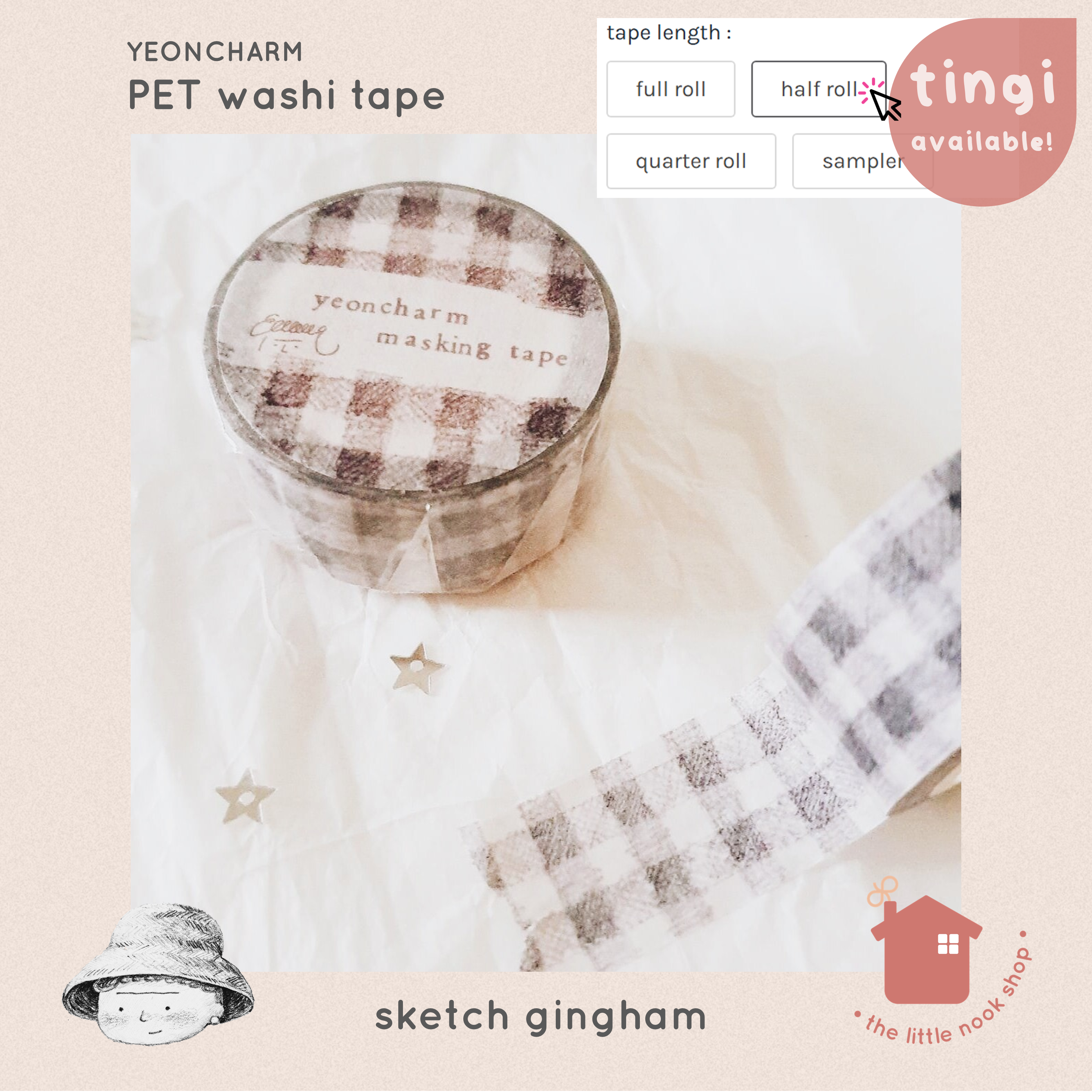 Yeoncharm Washi (Paper) Tape - Sketch Gingham