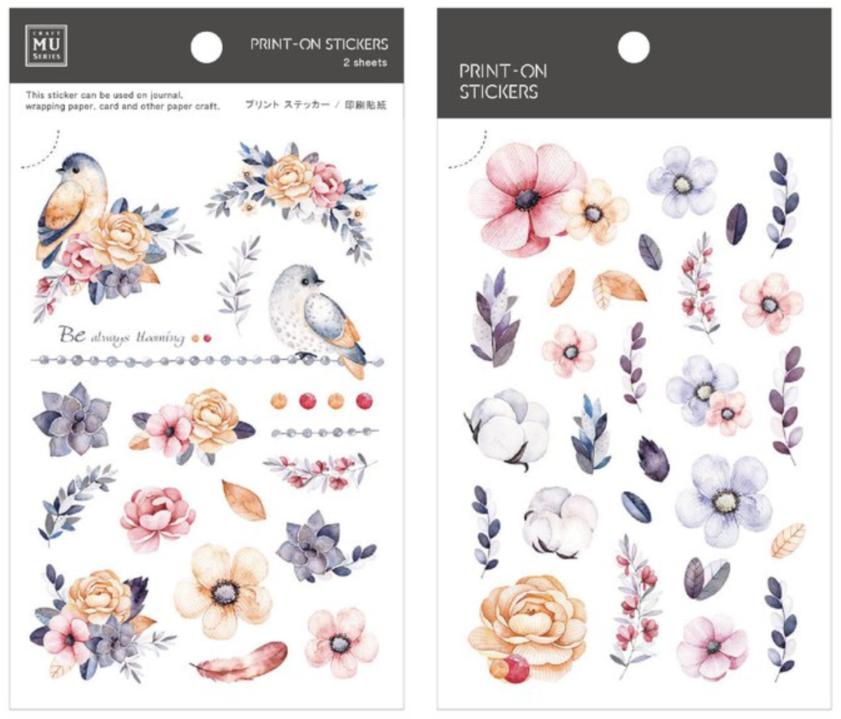 Per Pack: 2 print on sticker sheets