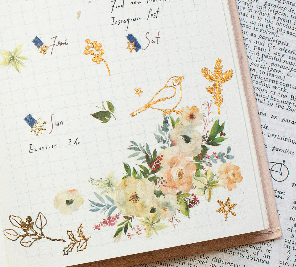 MU Print On / Rub On Stickers are very thin sticker used to decorate journals and planners. It lays flat on journal pages and can be layered with stamps and washi tapes to create a wonderful collage look. Create lovely journal pages WITHOUT THE BULK!