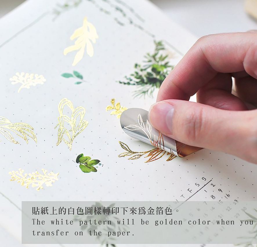 • The white pattern will be golden / silver color when you transfer on the paper.