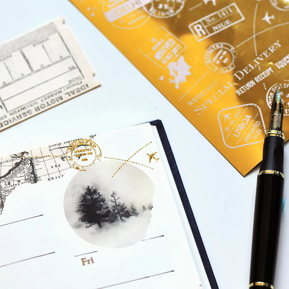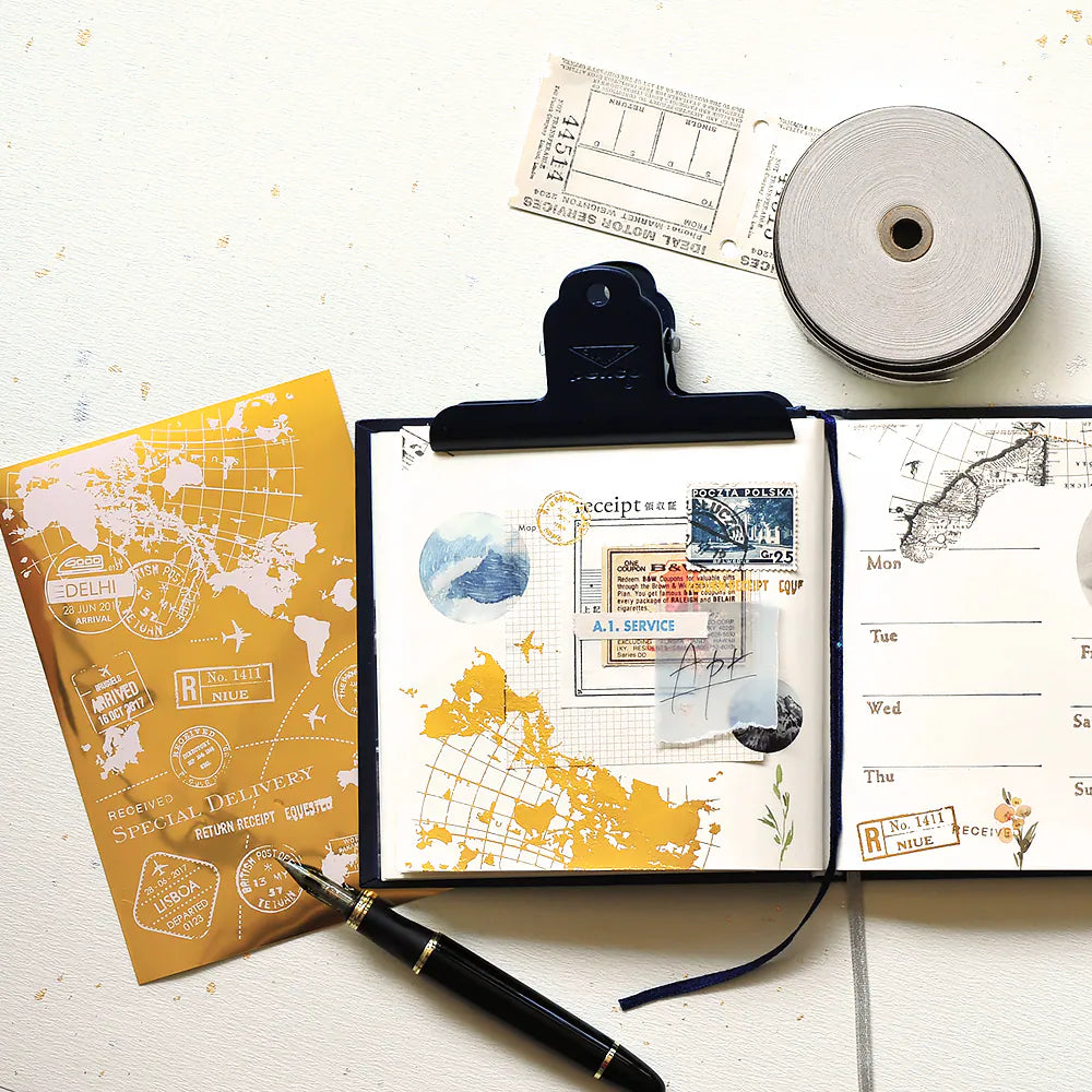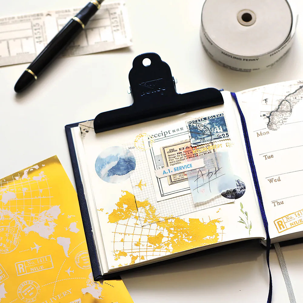 Decorate journals and planners. It lays flat on journal pages and can be layered with stamps and washi tapes to create a wonderful collage look. Create lovely journal pages WITHOUT THE BULK!