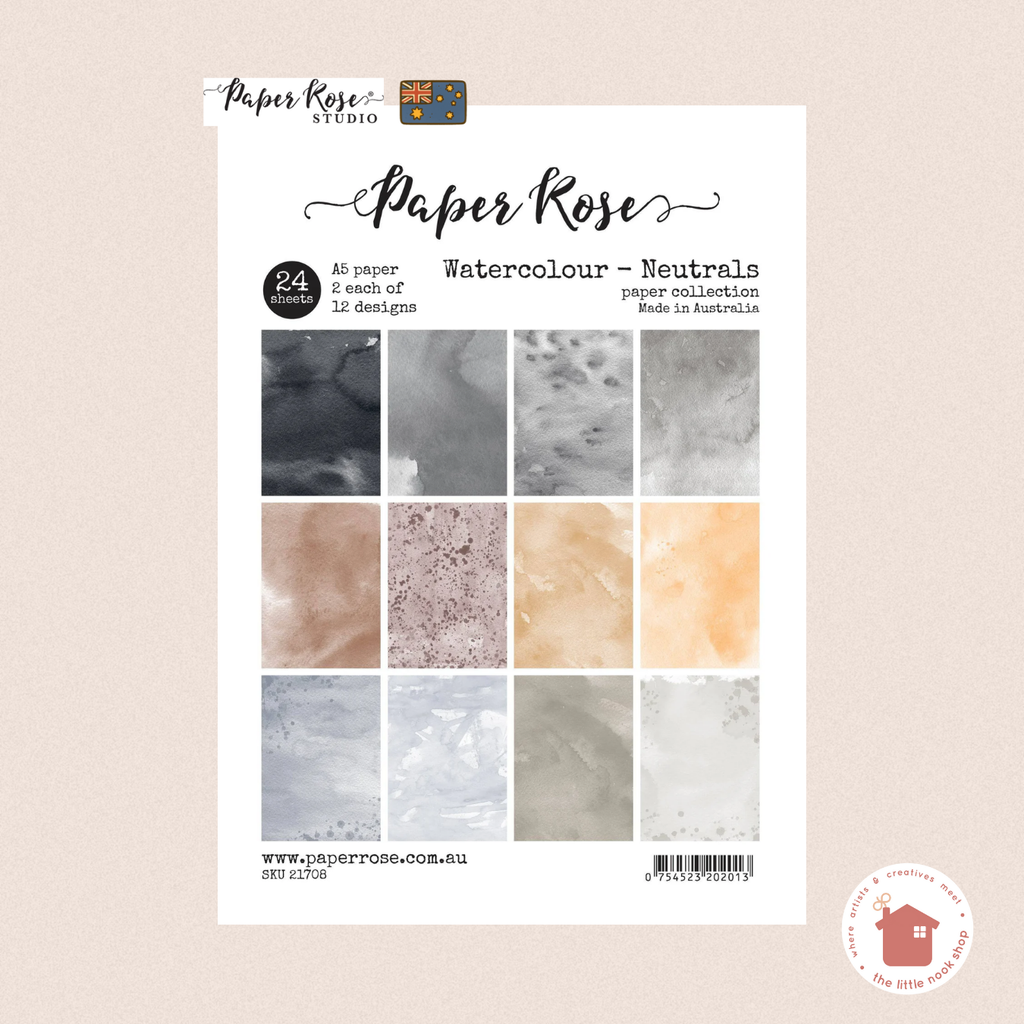 Paper Rose Studios Watercolour Neutrals A5 Size Cardstock