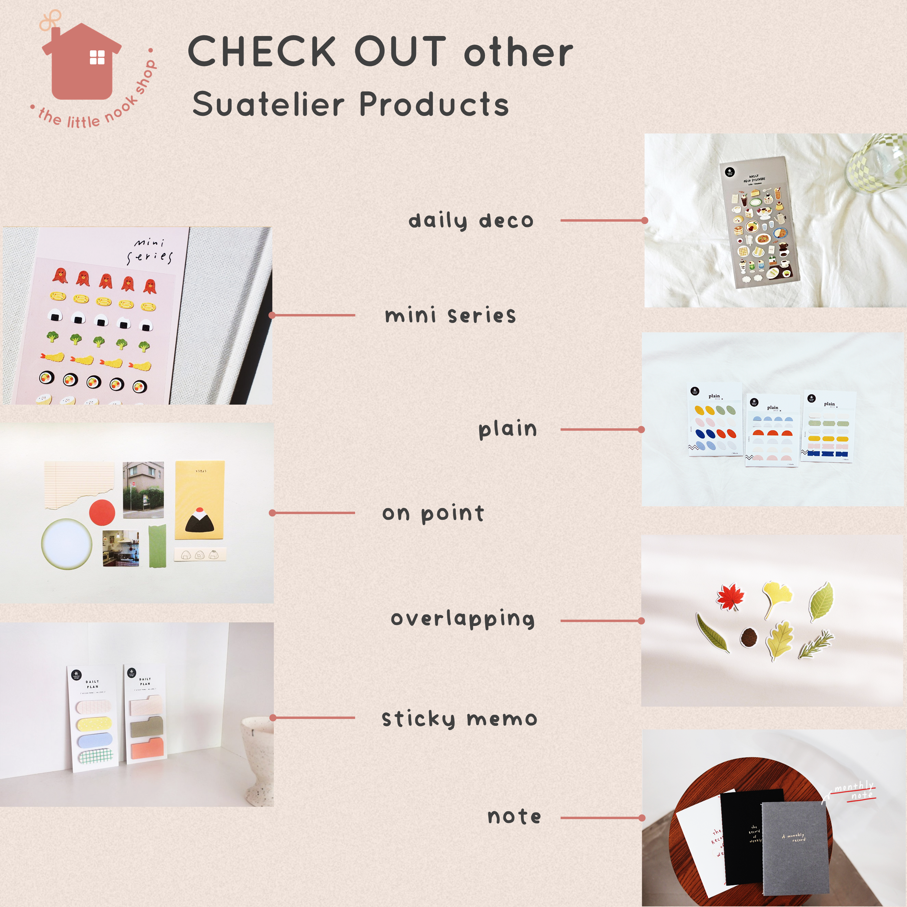 Suatelier stickers are fun, cute, minimalist stickers from Korea coming in various sizes which can be used for decorating various planners and journals. Sticker materials vary from washi paper to transparent PET. Make sure to check out all Suatelier products in store. We have Suatelier stickers, note pads ad planners in store! ✨